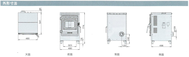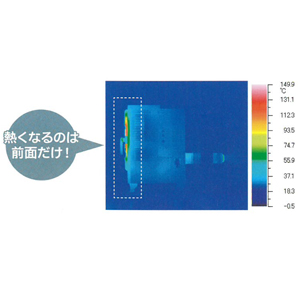 熱をムダなく前面から放出するために、ストーブの上部や側面は熱くなりません。