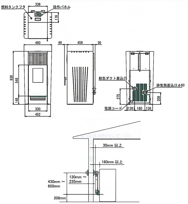 業界初!!高気密住宅対応型で、足元あったか温風下吹き出しの木質ペレットストーブ 【価格:オープン価格】